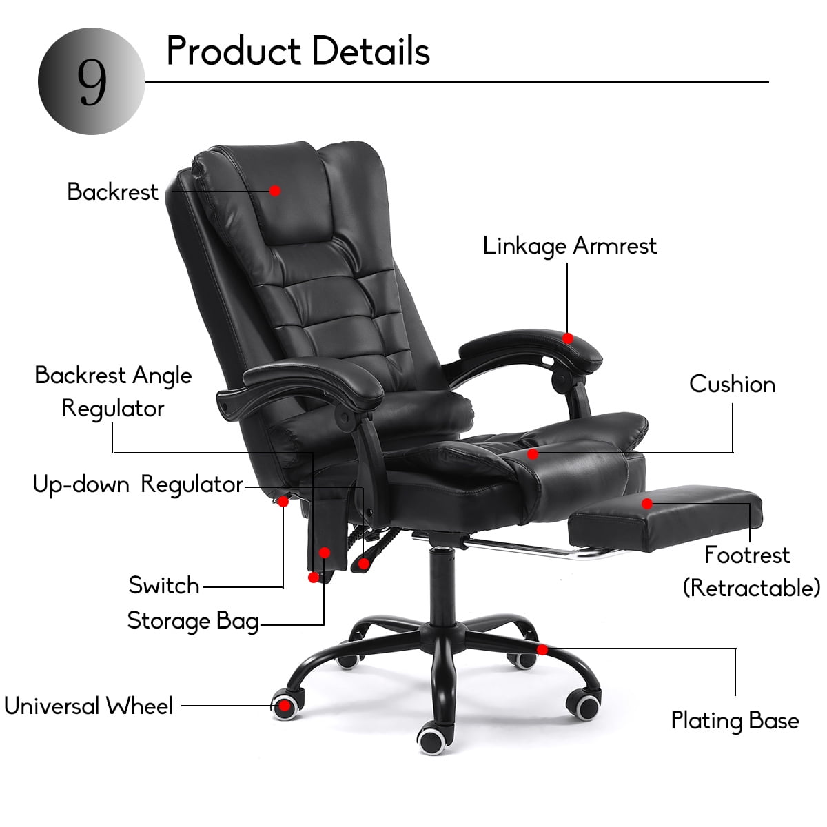 Pu Leather High Back Massage Executive Office Chair Computer Chair High Back Adjustable Reclining Soft Leather Chair Swivel Seat With Footrest Recliner Walmart Com