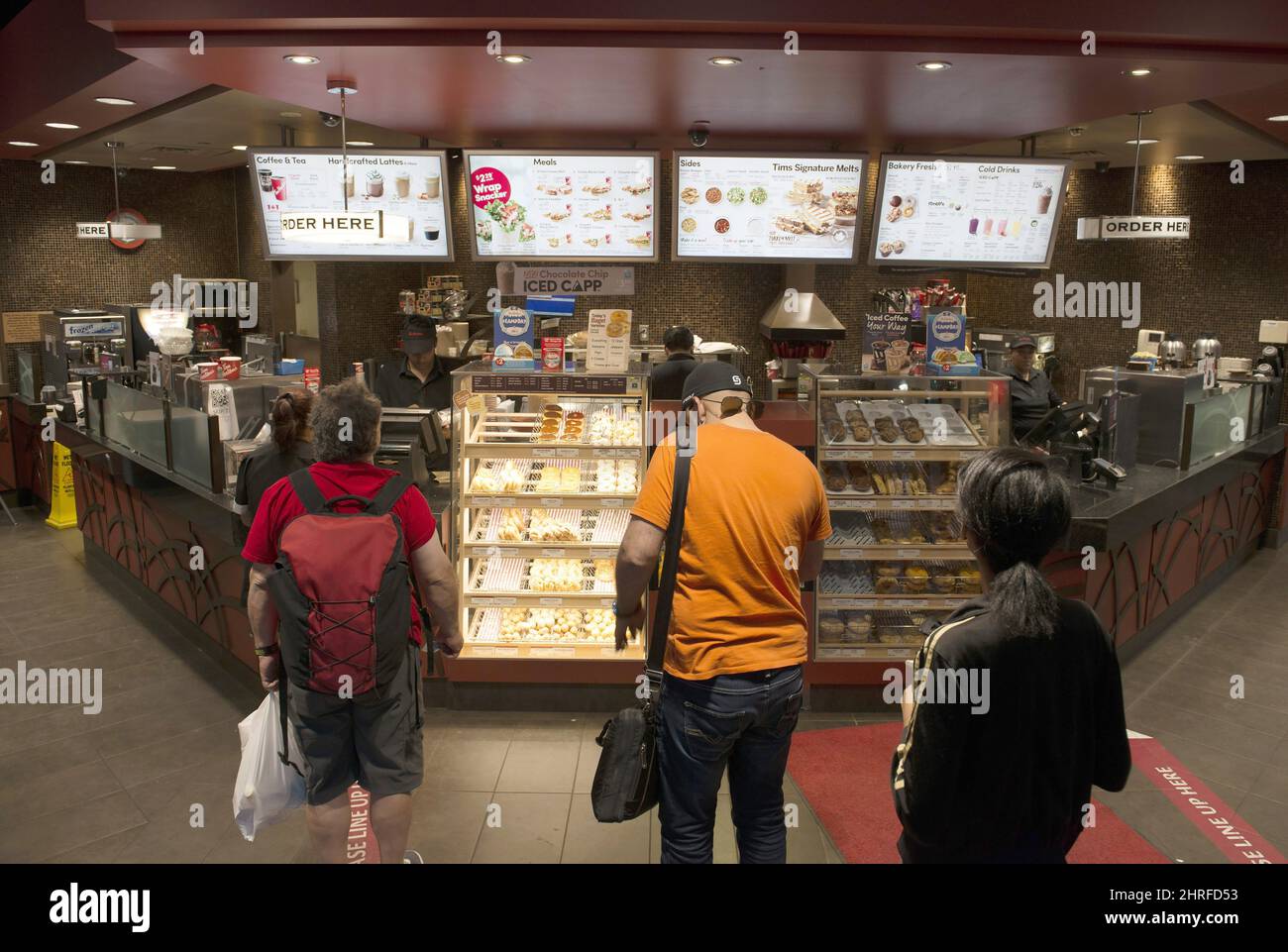 Customers Line Up To Place Their Orders At A Tim Hortons Restaurant In Toronto On Tuesday May 29 2018 Tim Hortons Will Pilot All Day Breakfast In A Dozen Ontario Locations And Look